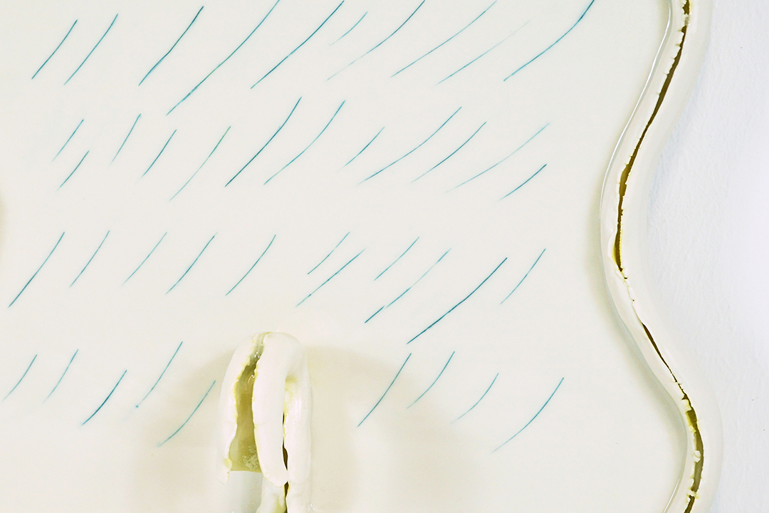 In this work I use the form of a drainage hole in the flat porcelain body to let the colors of various emotions drain out.